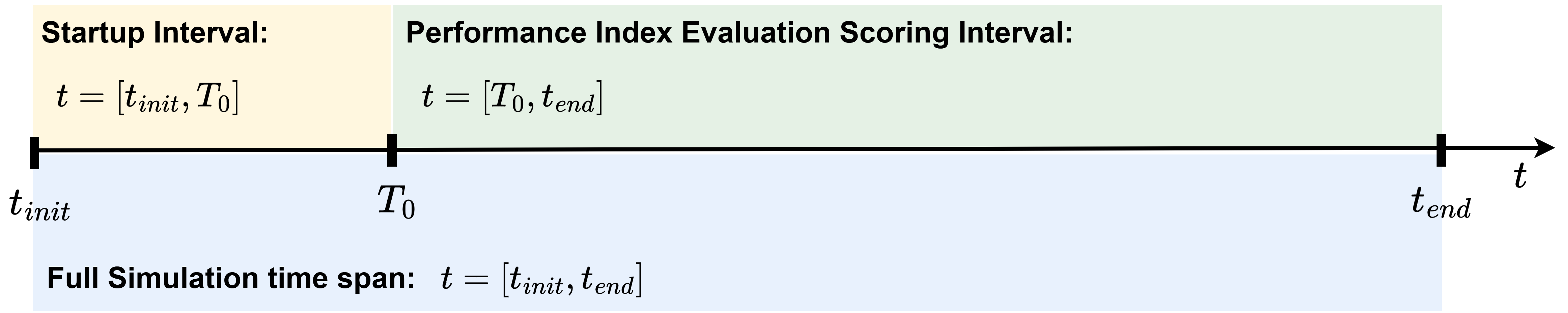 The performance index \(\mathcal{G}\) is computed only during the scoring interval \(t \in [T_0, t_{end}]\), where \(T_0 = 30\) s.